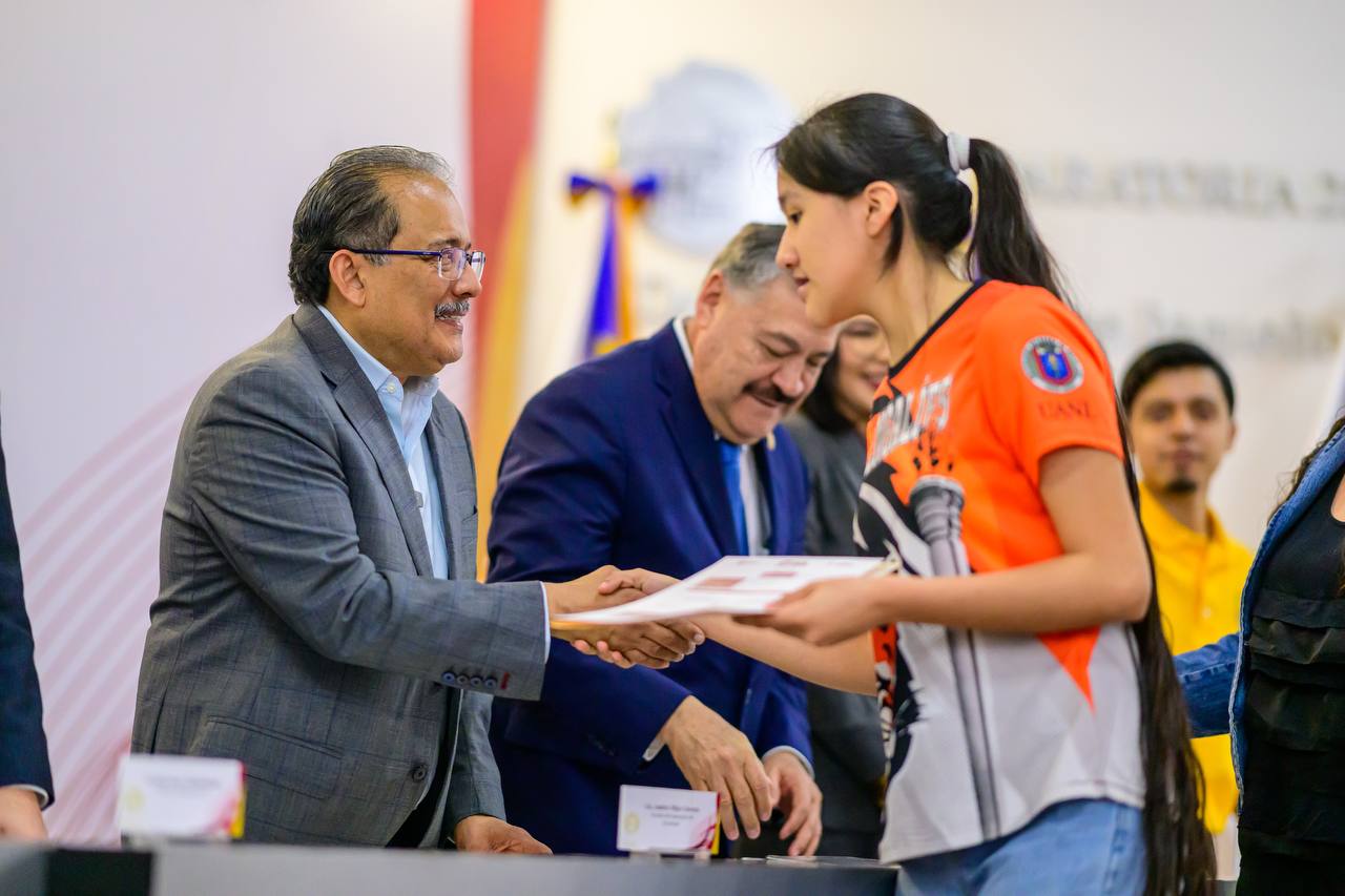 El Alcalde Andrés Mijes junto a Santos Guzmán, Rector de la Máxima Casa de Estudios dio inicio al programa «Becarios de la Capital de la Transformación: Mi Prepa en Escobedo», donde en una primera etapa se entregó este apoyo a más de 600 jóvenes de la Preparatoria 25 «Dr. Eduardo Aguirre Pequeño».