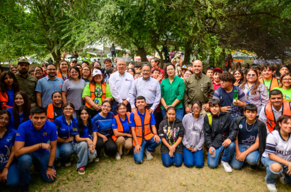 Escobedo, NL.- El Alcalde Andrés Mijes junto a más de 200 estudiantes formalizó este viernes una sinergia de colaboración para cuidar el medio ambiente y desde cada una de sus trincheras emprender acciones que ayuden a preservar las áreas naturales que existen en las comunidades.