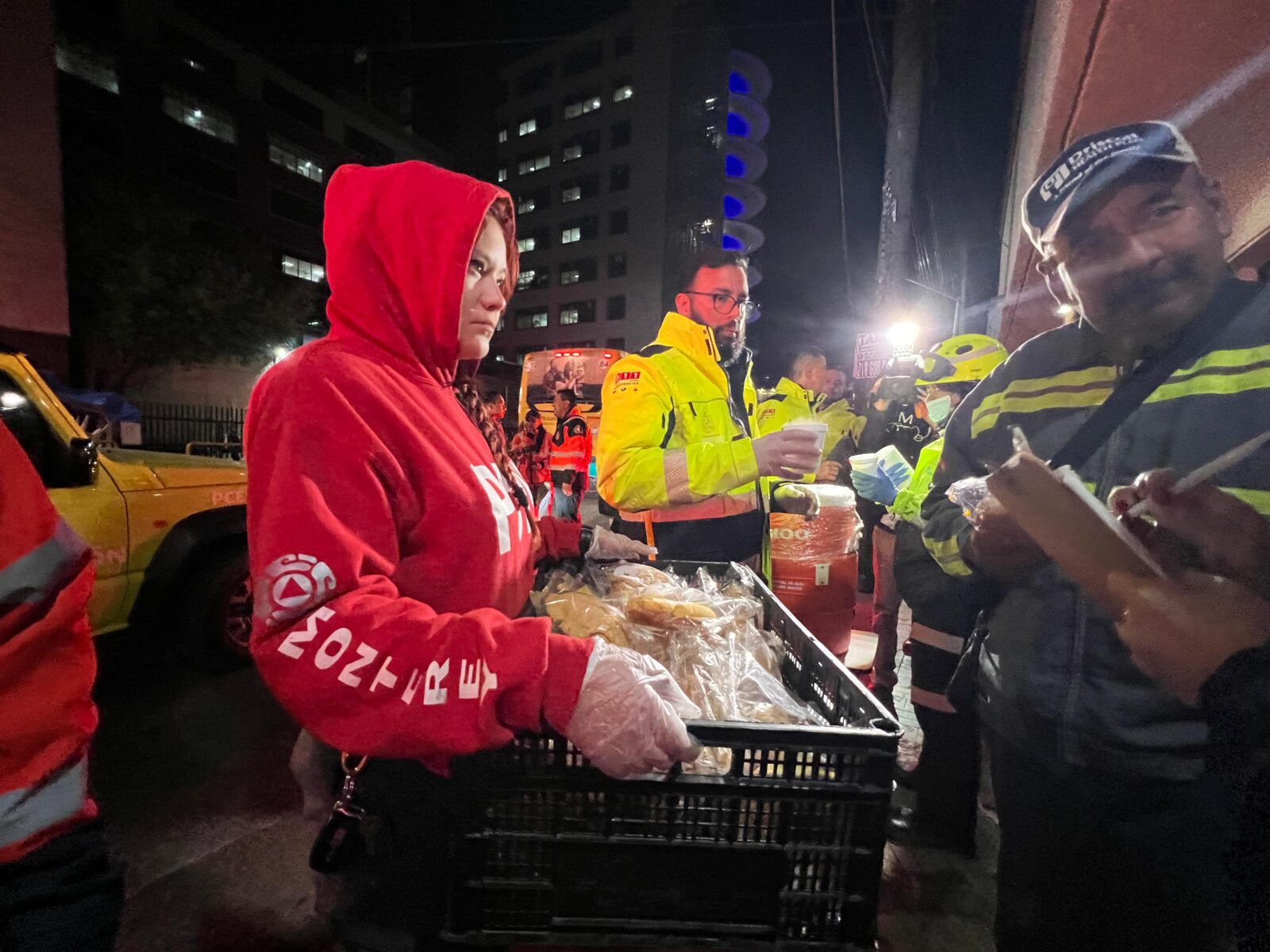 Los socorristas entregaron más de 300 piezas de pan, sirvieron alrededor de 60 litros de chocolate caliente y entregaron los cobertores a quienes los requería para protegerse del frío.