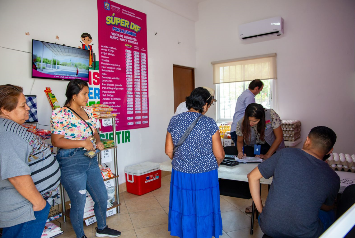 De lunes a viernes, de 8 de la mañana a 3 de la tarde se ofrecen productos -a costo de producción- en los Súper DIF, tales como aceite, huevo, verduras, pan blanco, leche, tortillas, papel higiénico, pasta dental, detergente.