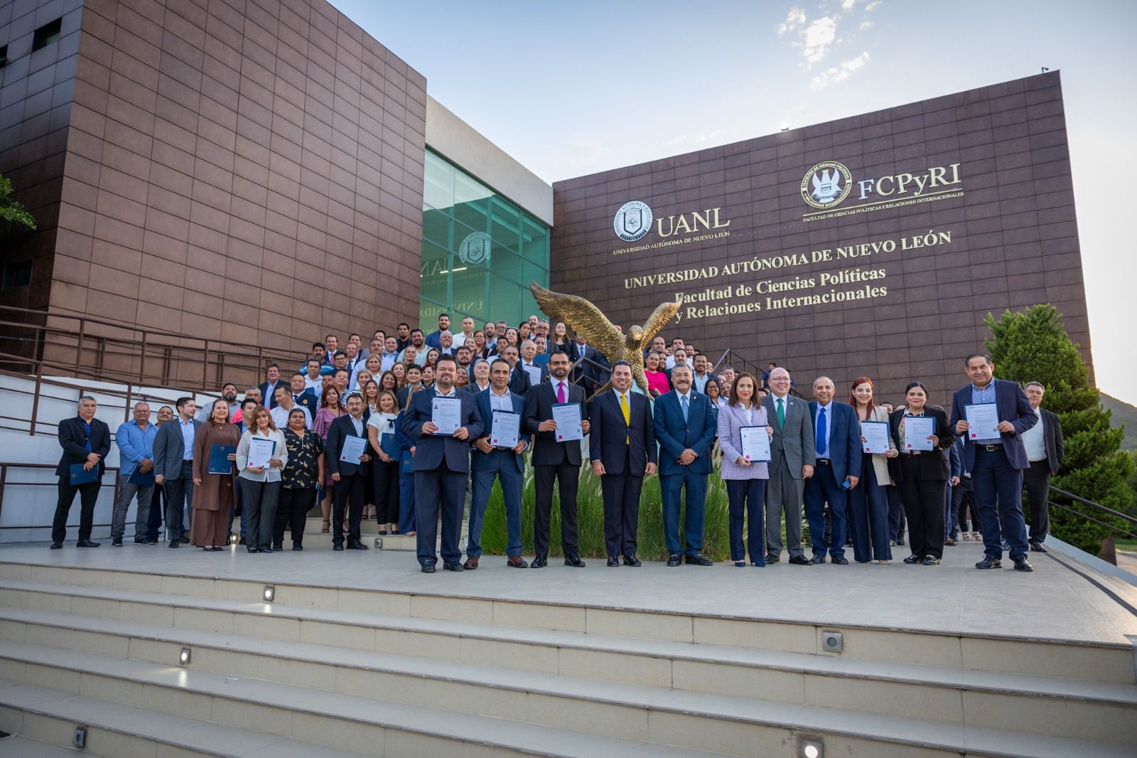 Durante el acto estuvieron presentes: el Secretario Académico de la UANL, Jaime Castillo Elizondo; el Director de Formación y Desarrollo Profesional y líder en la certificación, Juan Manuel Adame; y el Director de la Facultad de Ciencias Políticas y Relaciones Internacionales, Dr. Abraham Hernández Paz.