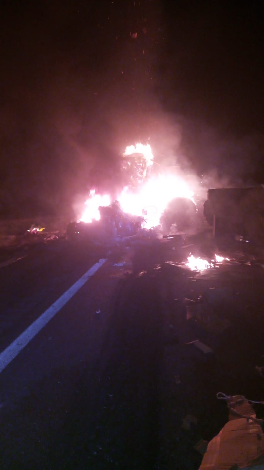 Salinas Victoria, NL.- Un choque entre dos tráileres dejó e incendio bloqueada la vialidad en la Autopista a Laredo la madrugada de este sábado.