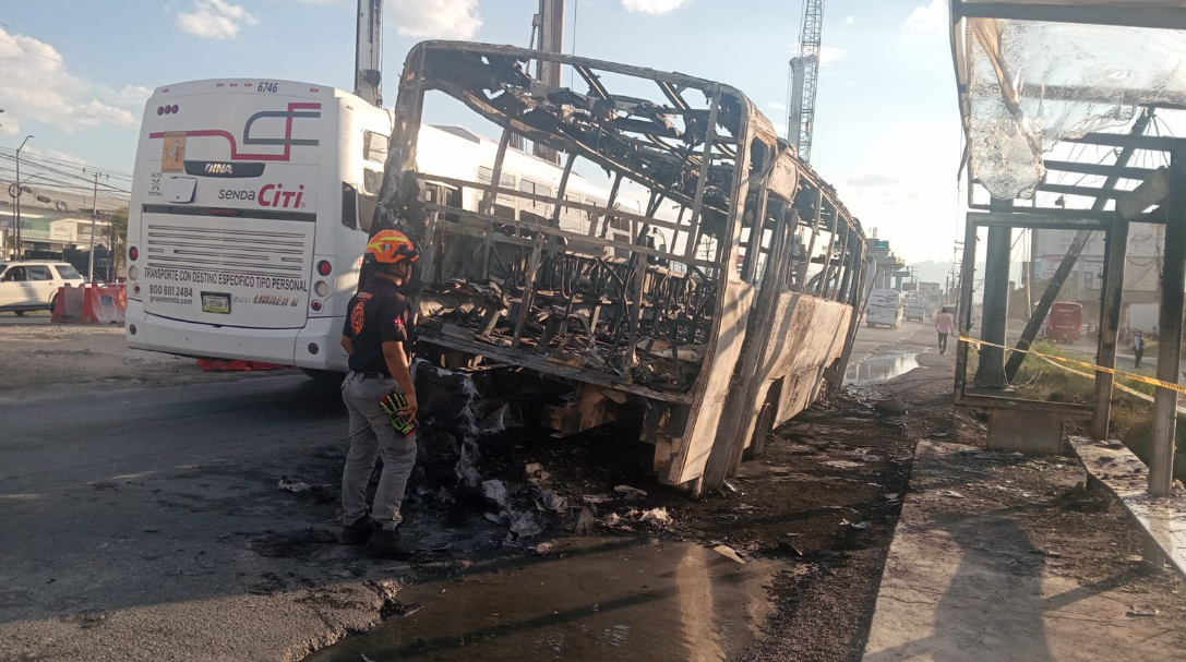 Al sitio arribaron elementos de Protección Civil del Estado, quienes no pudieron hacer nada para evitar que el fuego consumiera por completo esta unidad de transporte público.