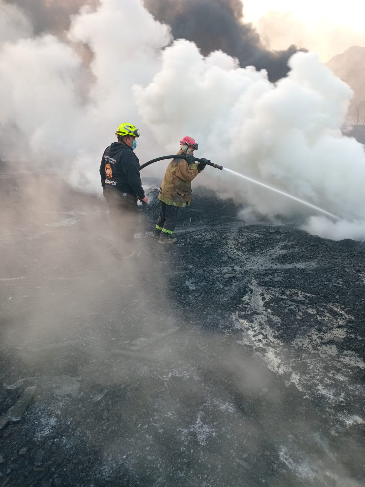 «“Los incendios que se han estado presentando han sido apagados, estuvimos trabajando toda la madrugada en el área del corralón, donde había más fuego, hay muchos sólidos inflamables que batallamos para apagar, utilizamos espuma contra incendios, trabajamos en los patios de la empresa ADS, donde se consumió plástico principalmente, ahora estamos en la etapa de rescoldeo y limpieza», dijo Contreras Vásquez.