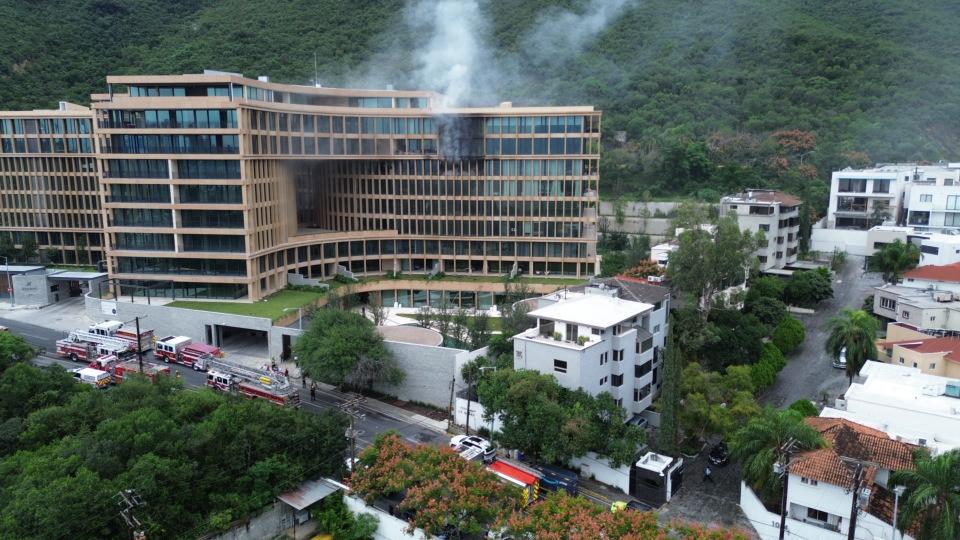 Minutos antes del mediodía fue cuando se reportó el siniestro en el complejo que se ubica en la Avenida Roberto Garza Sada en la Colonia Residencial Chipinque.