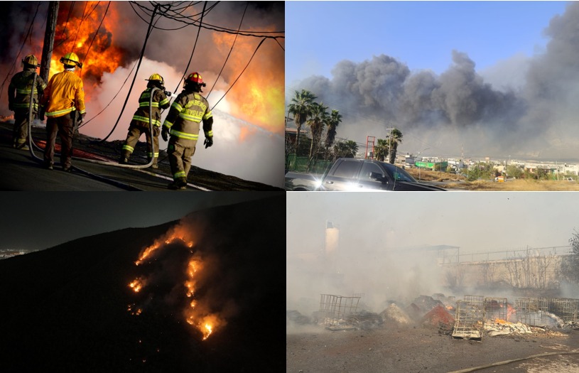 Posteriormente los vientos desataron una gran cantidad de incendios que desde la mañana han mantuvieron a los elementos de Bomberos y Protección Civil de diferentes municipios como también a la corporación estatal en constante combate con las llamas.