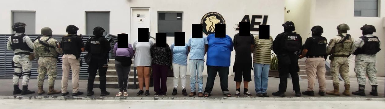 Por tal motivo fueron detenidos Junio «N» de 33 años; José «N» y Xóchitl «N» de 28, Juan «N» de 46, Herminia «N» de 50, Humberto «N» de 51, Lorena «N» de 52 y Vianney «N» de 18, quienes junto con lo asegurado quedaron a disposición del Ministerio Público.