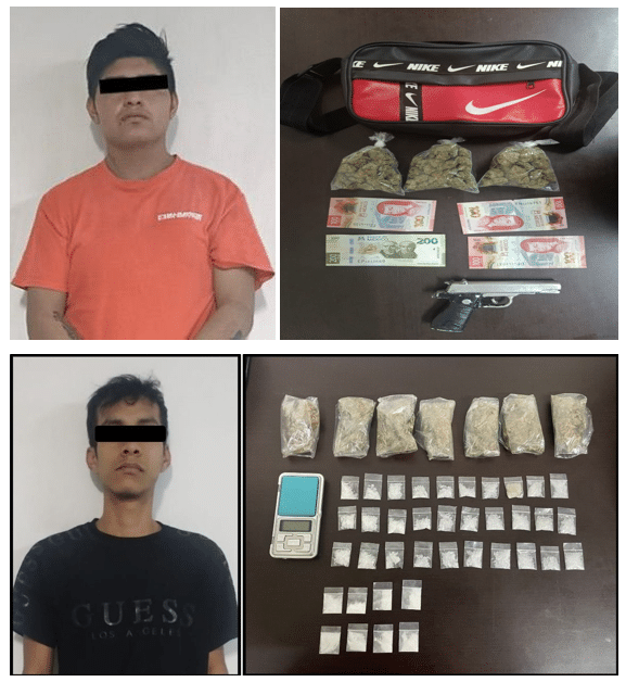 Las autoridades informaron que la primera detención se realizó luego de que fueran alertados de un asalto en una barbería que se ubica en la Colonia San Gilberto, y al momento de arribar al negocio encontraron a un delincuente amagando a una empleada con un arma de fuego y exigiendo el dinero, pero su objetivo se vio frustrado al ser sorprendido por los uniformados.