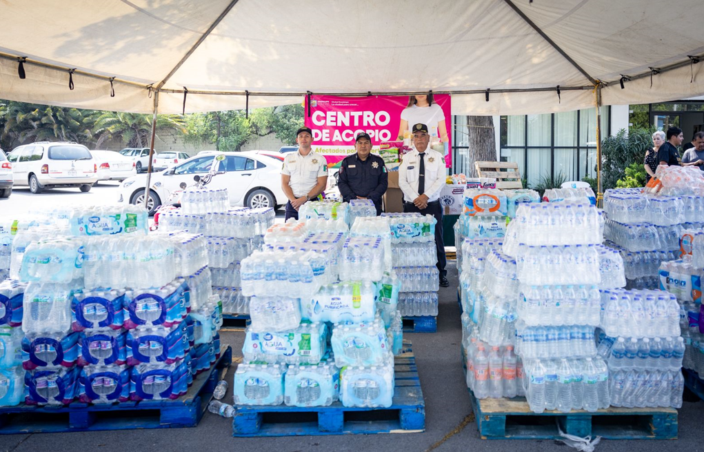 Personal de Tránsito, Policía Municipal, administrativo, de la unidad de análisis y del C4i, con recursos propios, reunieron y entregaron más de 6 mil botellas de agua potable, y más de 170 artículos de limpieza, comida enlatada e higiene personal, en el Centro de Acopio ubicado en el DIF Tres Caminos, a fin de apoyar a las familias que se encuentran en una situación vulnerable.