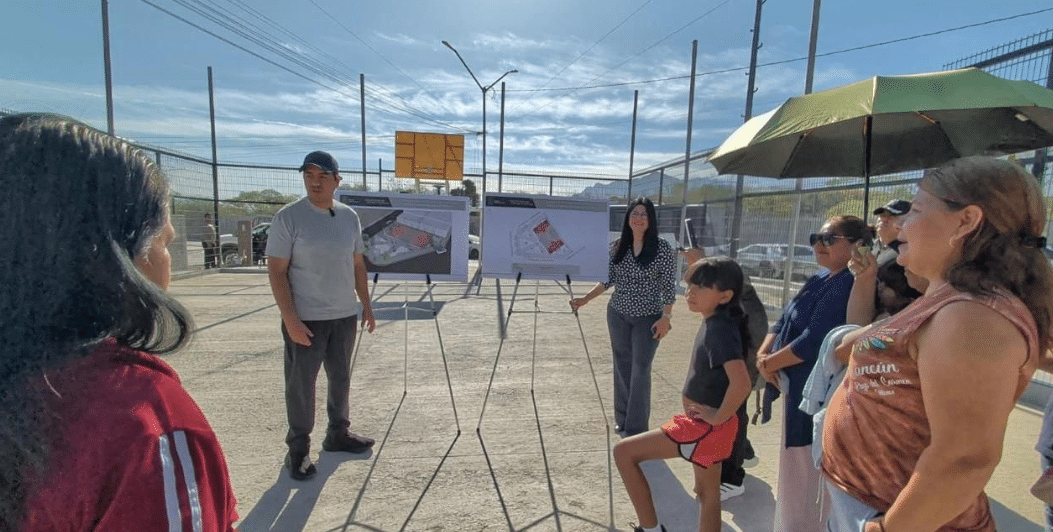 Nava Rivera informó a los vecinos sobre los trabajos en dicho espacio público que consisten en la construcción de una cancha polivalente, andadores de concreto, instalación de alumbrado público, bancas metálicas y áreas permeables.
