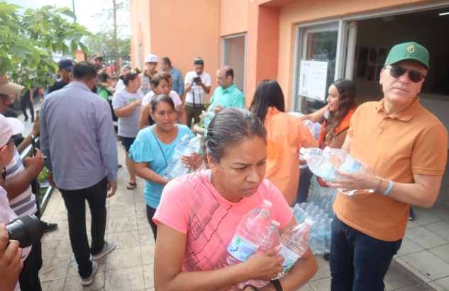 En el Cedeco de la colonia Fama II, con la representación del Alcalde Jesús Nava Rivera, el Secretario del Ayuntamiento, Iván Medrano Téllez, acompañó en la entrega del agua purificada, a Alfonso Martínez Muñoz, Secretario de Medio Ambiente en la entidad.