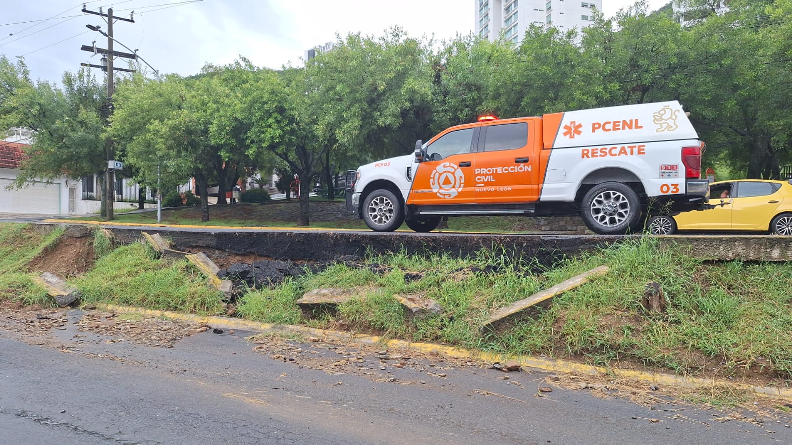 Monterrey, NL.- Las lluvias que se registraron este miércoles en el área metropolitana provocaron un desgajamiento en la carpeta asfáltica en la Colonia Ciudad Satélite, al sur de la ciudad.