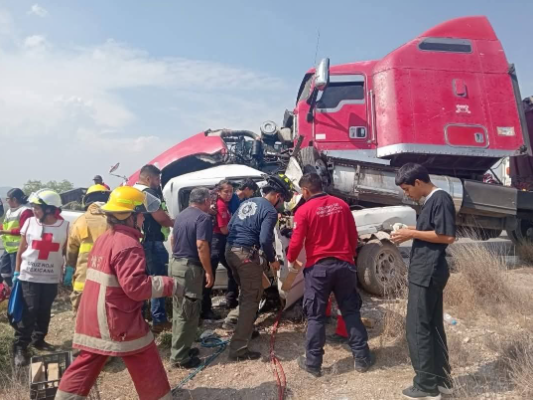Las autoridades mencionaron que una el tráiler presuntamente habría invadido carril y chocado de frente contra la camioneta sin que se precisara si la persona que conducía la pesada unidad sufrió una dormitada al volante y se debió a una falla mecánica.