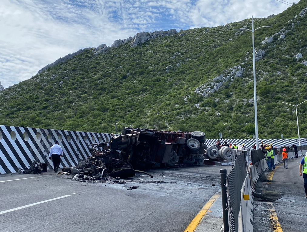 Santa Catarina, NL.- Un tráiler sin frenos ocasionó una tragedia la mañana de este sábado luego de chocar, volcar e incendiarse provocando la muerte de 6 personas.