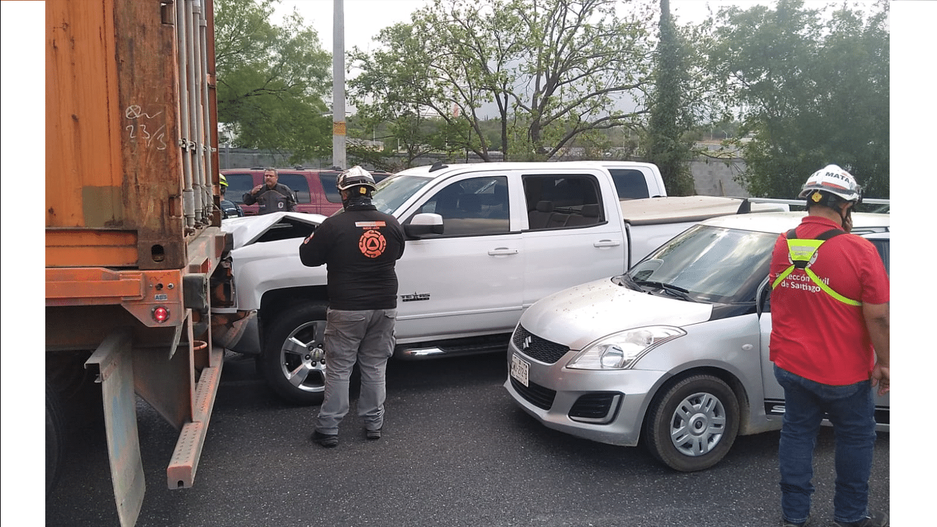 Santiago, NL.- Un choque múltiple en el que participaron 5 vehículos entre los cuales se encontraba un tráiler, dejó a 2 personas lesionadas en Santiago.
