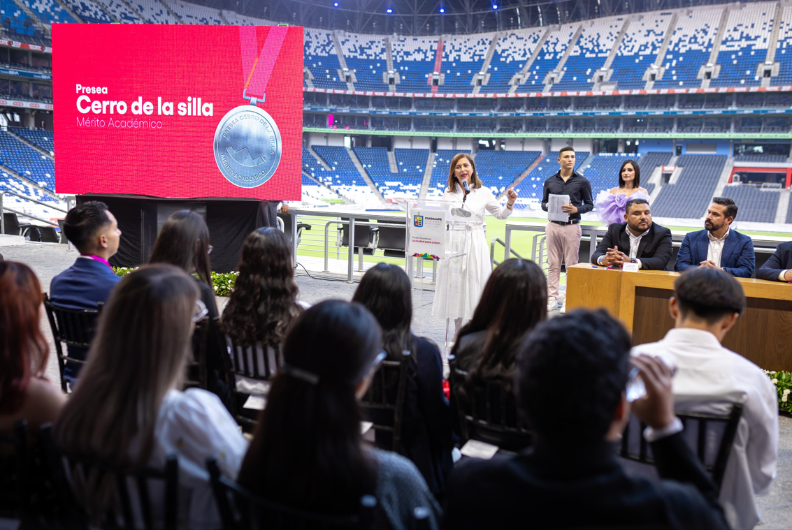 Guadalupe, NL.- Por tercer año consecutivo, el Gobierno Municipal reconoció a 38 jóvenes destacados de prepa y facultades con calificaciones perfectas de 100 o mención honorífica, con la Presea “Cerro de la Silla” 2024, así lo dio a conocer la Alcaldesa Cristina Díaz.