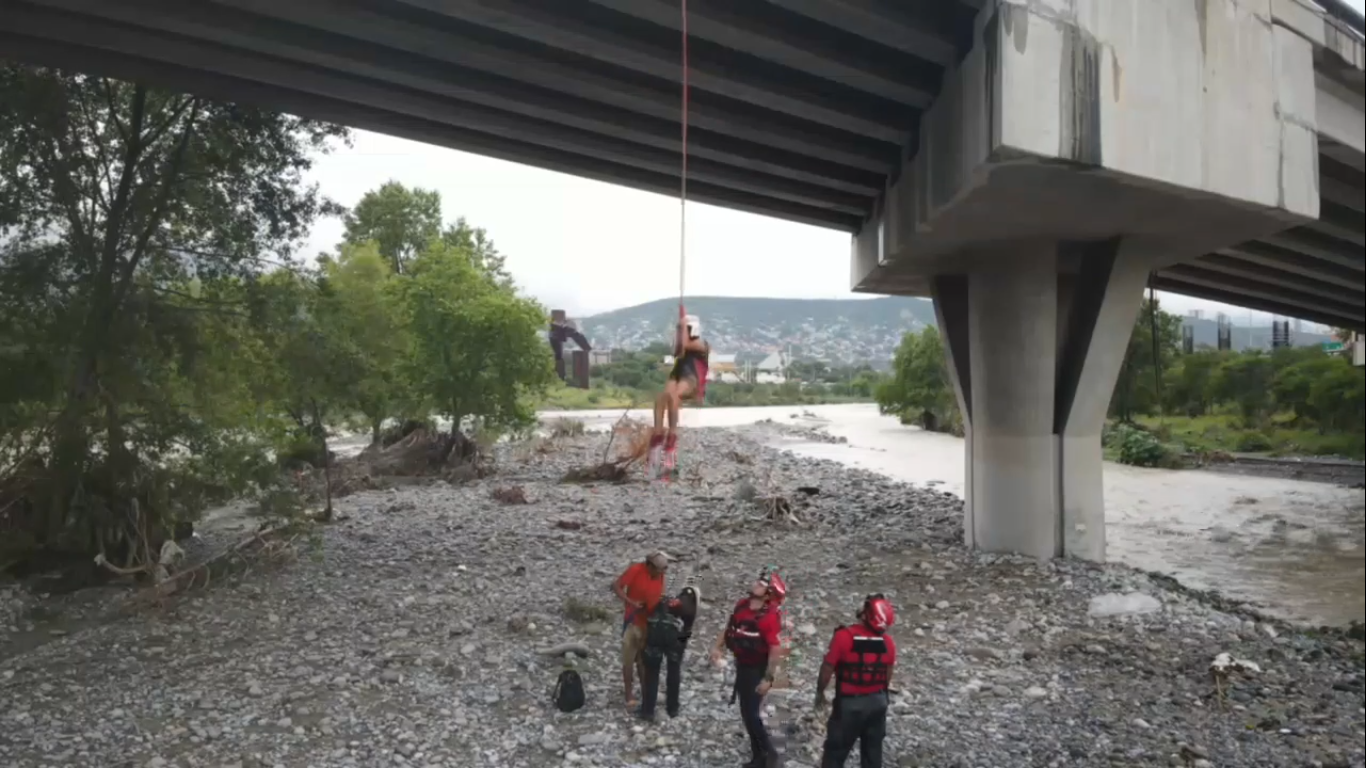 Monterrey, NL.- Una pareja fue rescatada este miércoles luego de que quedaran varados en las inmediaciones del Río Santa Catarina.