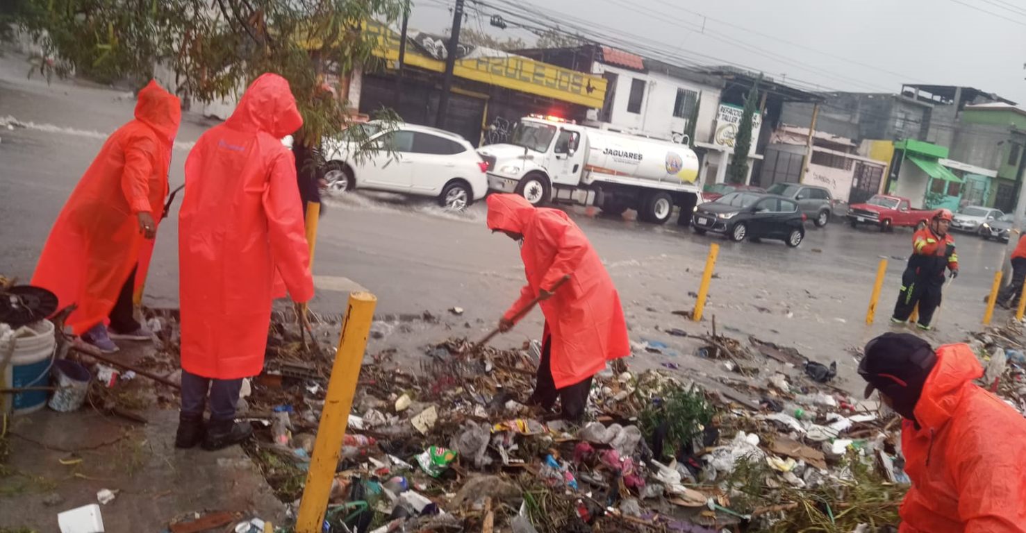 Santa Catarina, NL.- El Gobierno Municipal realiza el retiro de basura y desechos vegetales arrastrados por las lluvias de la tormenta tropical «Alberto», para habilitar la vialidad en puntos críticos de la Ciudad.