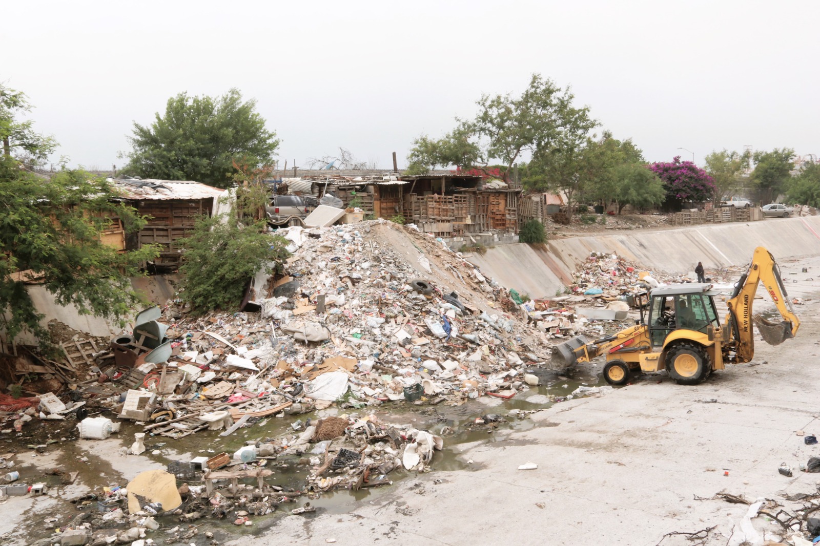 Con el apoyo de camiones de volteo y de 3.5 toneladas, así como retroexcavadoras y camionetas pick up, el personal del Gobierno de Santa Catarina procedió a la recolección de cacharros, llantas, muebles en desuso y desechos diversos que generan un foco de infección en ese sector cercano a las calles Puerto Natales y Puerto Carreño.
