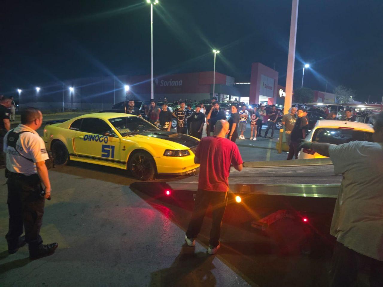 Este operativo se realizó en el estacionamiento de Soriana La Puerta poco después de las 12:00 am de este domingo, donde también intervinieron elementos de Protección Civil, de Vialidad y de Comercio, culminando a las 4:00 am.