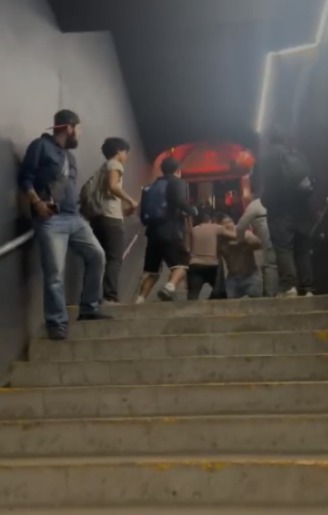 Alrededor de las 6:30 de la tarde fue cuando los usuarios actuaron por su cuenta al detectar al hombre que presuntamente había sustraído varios dispositivos y ellos sometieron al delincuente hasta el arribo de las autoridades en las escalinatas de la Estación Padre Mier.