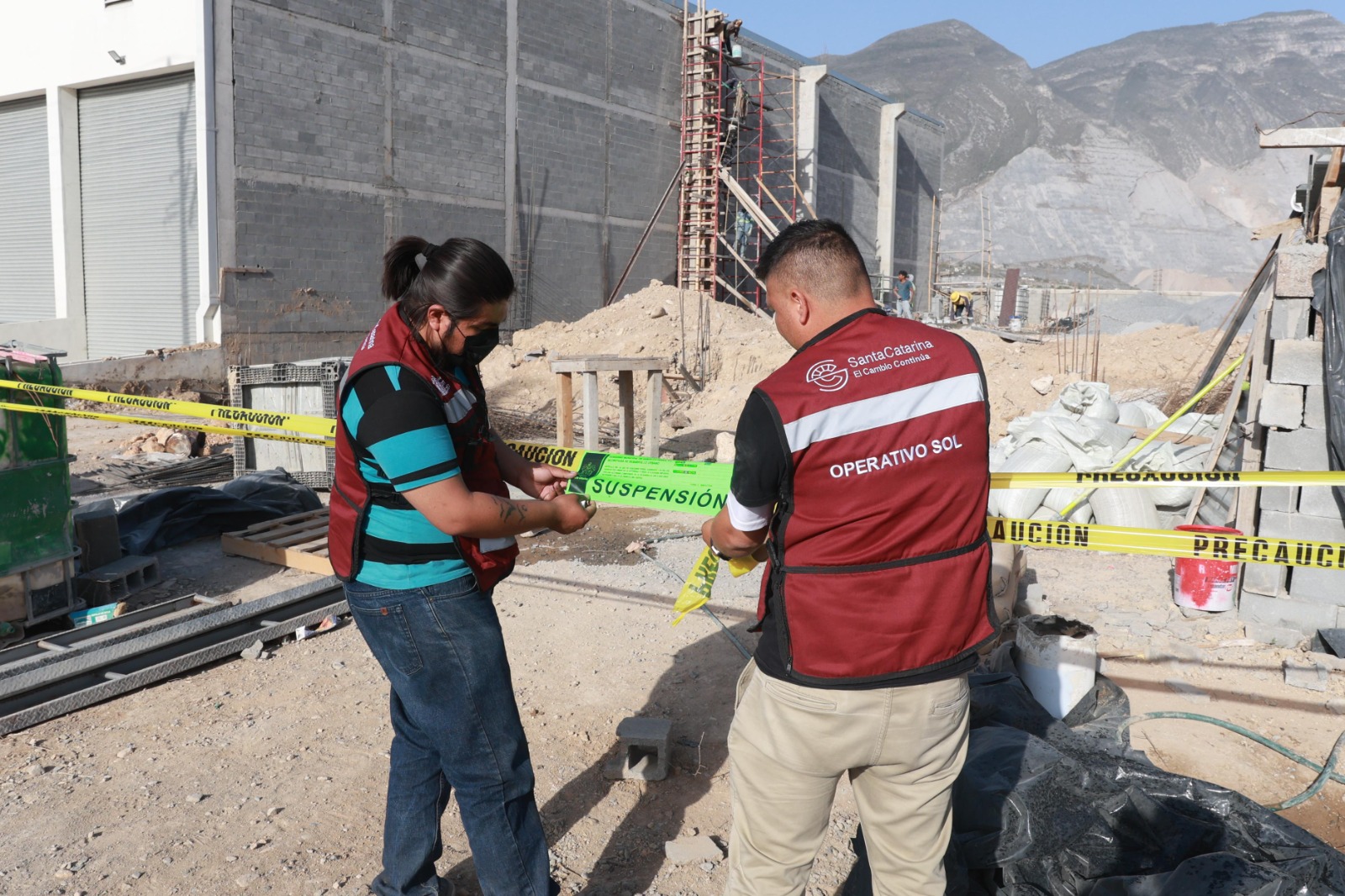 Santa Catarina, NL.- Ante la contingencia ambiental, el Gobierno Municipal implementó un plan de acciones con la supervisión y suspensión de obras de construcción en proceso para garantizar el control de emisiones a la atmósfera.